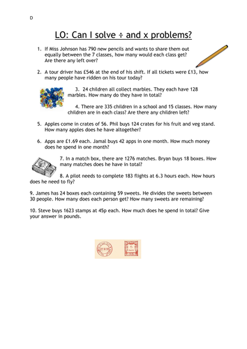Multiplication And Division Word Problems Year 6 Tes