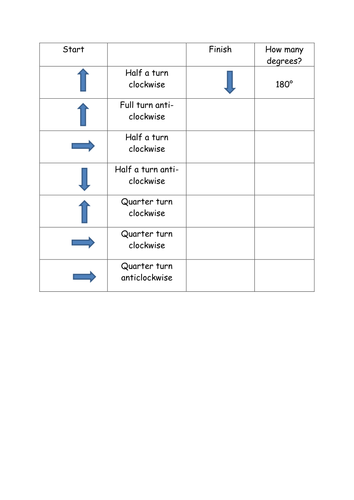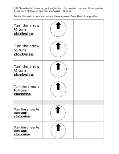 Its also a fun activity to do to break up some of the more structured learning. This is also great for teaching quarter turns half turns and full turns. BAR - Circle half or quarter turn also supported physically having the shapes to move AR - To write halfquarter turn.
